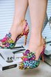 Be ready to bloom in these high heels! The beautiful flower design on the vamp and buckle closure will make you look and feel like a seductive goddess. The perfect heel height and sleek silhouette will hug your curves,giving you the confidence to take on the night.