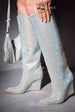 Outshine the brightest star when you walk in these rhinestone-accented Coraline thigh-high boots. Choose between black,silver,or print. Bet you'll always pick the right color.