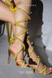 Razzle dazzle into the night with Gemma! These stunning beauties feature a chunky ankle lace-up rhinestone rope and a captivating metallic finish. They're the perfect blend of elegance and sparkle.