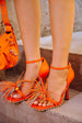 Style is on the way! Imaka delivers a cheery delight with its eye-catching pom pom fringe trim. Plus,the sturdy heels ensure you can dance the night away.