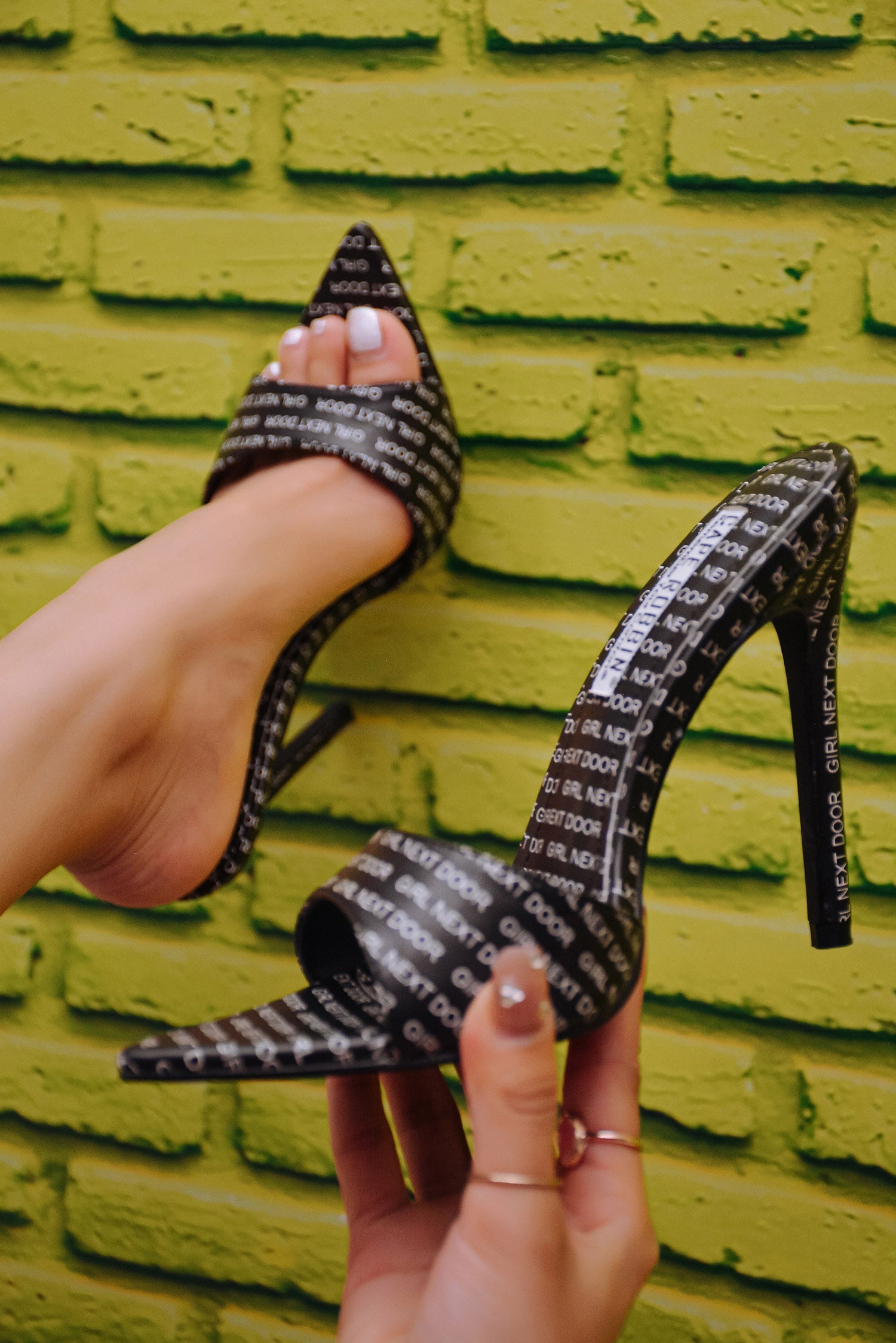 These Letter stiletto heels serve a chic,casual style to any look. The gorgeous heels ensure a comfortable fit and are perfect for a Friday night out with your besties.
