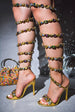 PANUS - GOLD - HEELS by CAPE ROBBIN round toe ankle to calf wrap around gem-crusted satin...