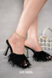 YONI - BLACK - HEELS by CAPE ROBBIN rhinestone covered heels feather trim high heels open toe...
